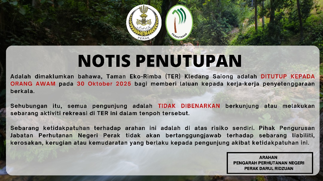 NOTIS PENUTUPAN TAMAN EKO-RIMBA (TER) KLEDANG SAIONG
